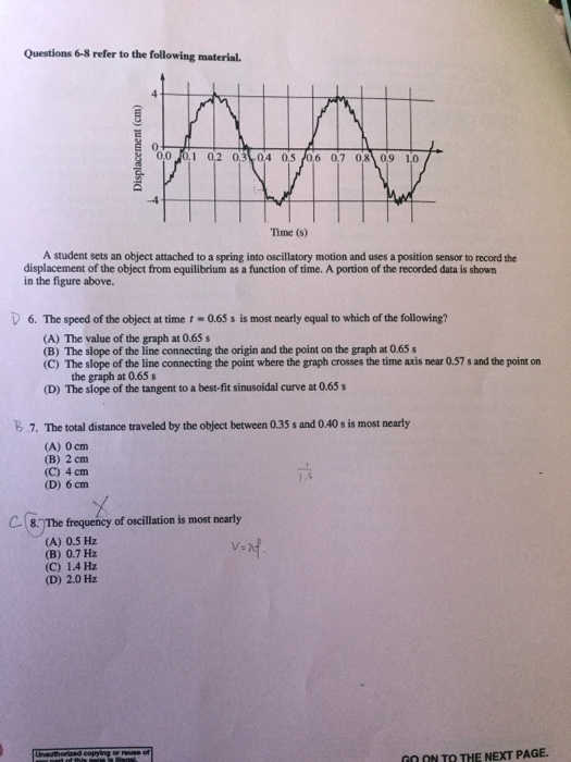 Now the student can use the equation T2Ï€ m k to find the unknown mass. A portion of the recorded data is shown in the figure above. A portion of the recorded data is shown in the figure above.
